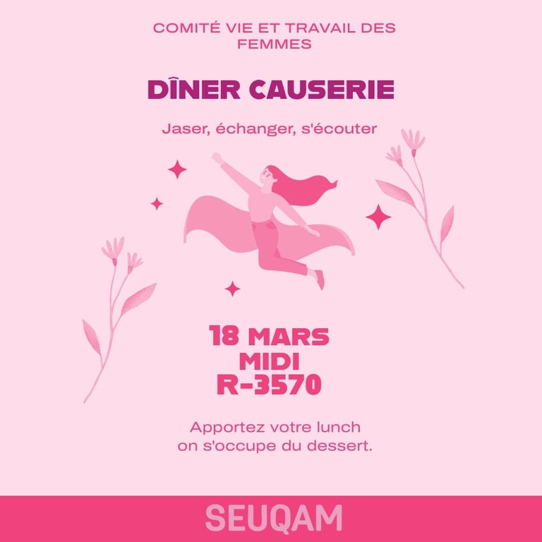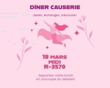 Le comité Vie et travail des femmes vous invite à un dîner-causerie convivial, un moment privilégié pour se rencontrer et échanger.